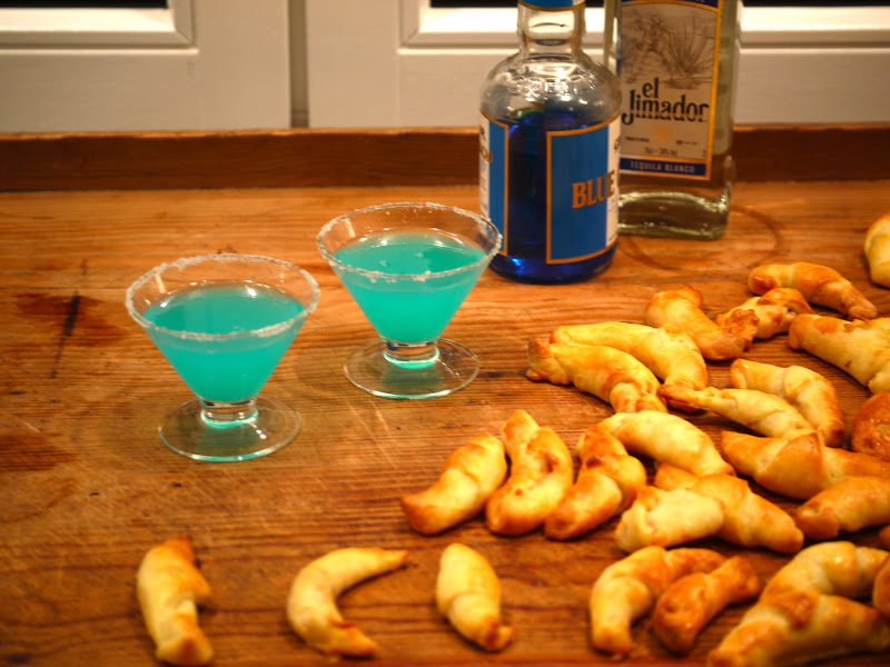 We prepared the original recipe but our drink of choice yesterday was a blue Margarita rather than champagne.