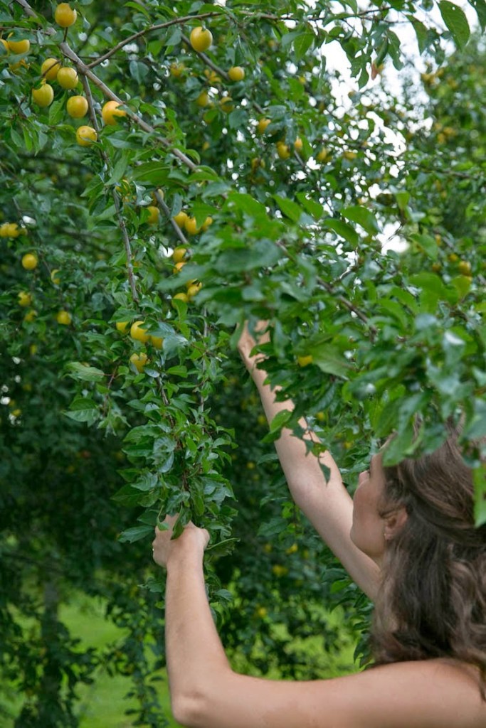 Yesterday we picked the first sun-kissed mirabelles from the tree. Although the season has not yet started I love to enjoy the first bright yellow, but still firm and slightly acidic mirabelles in a clafoutis, sooo good!