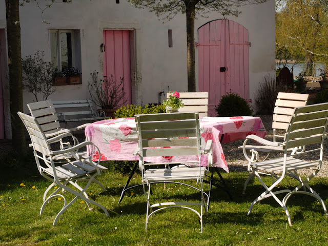 With  the weather all of a sudden sunny(?!?) and the temperature over 25°C (???!?) all productive behaviour was forgotten, instead our innermost primitive instincts took over: like sleepwalkers we dragged the table and chairs onto the lawn and decorated everything in pink and with flowers, only regaining control over our consciousness when happily seated in said chairs absorbing the warmth.